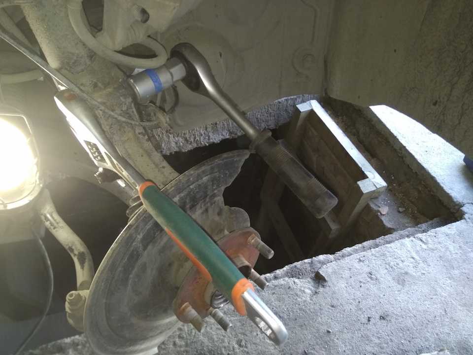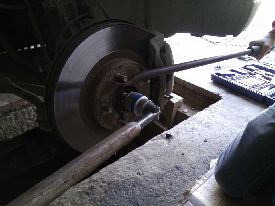 Снимается старая ступица и устанавливается новая в течение 30 минут. Такой период работы получается при правильном соблюдении последовательности с использованием подготовленного инструмента и предварительной обработки проржавевших деталей.
