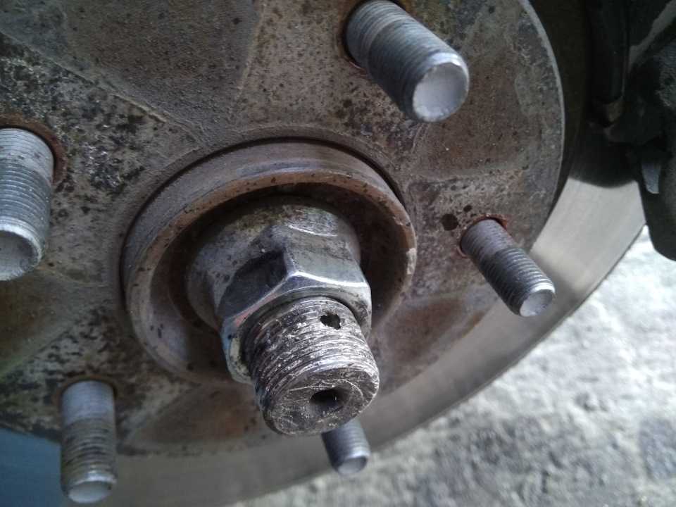 - Щеткой-насадкой для болгарки зачищается резьба полуоси. С помощью зубила и молотка или отвертки отгибается стопор, откручивается гайка на № 32 по центру ступицы (привод от кулака).