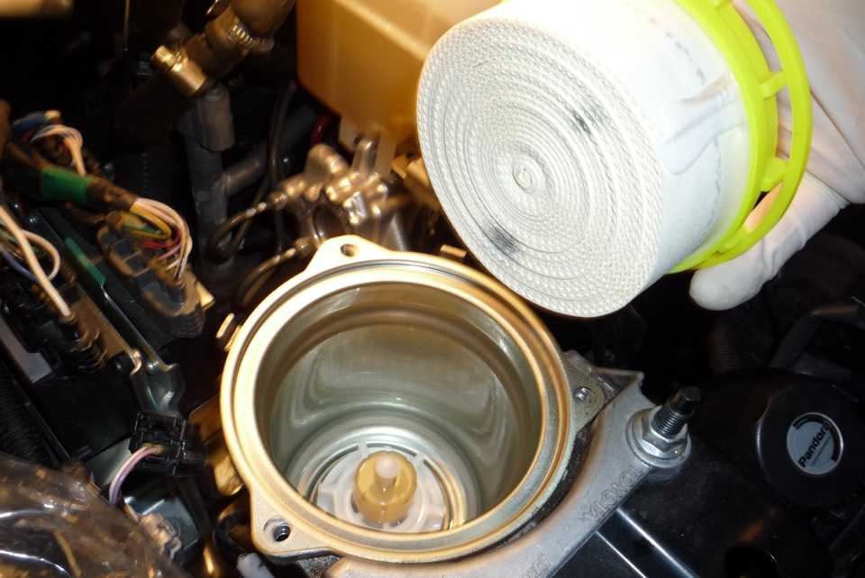- Демонтируется крышка, за которой расположен топливный фильтр. Фильтрующий элемент извлекается.