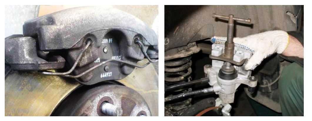 - Суппорт полностью готов к изъятию с посадочного места, при этом полностью не извлекается с колёсной арки. Просто отводится в сторону для удобства.