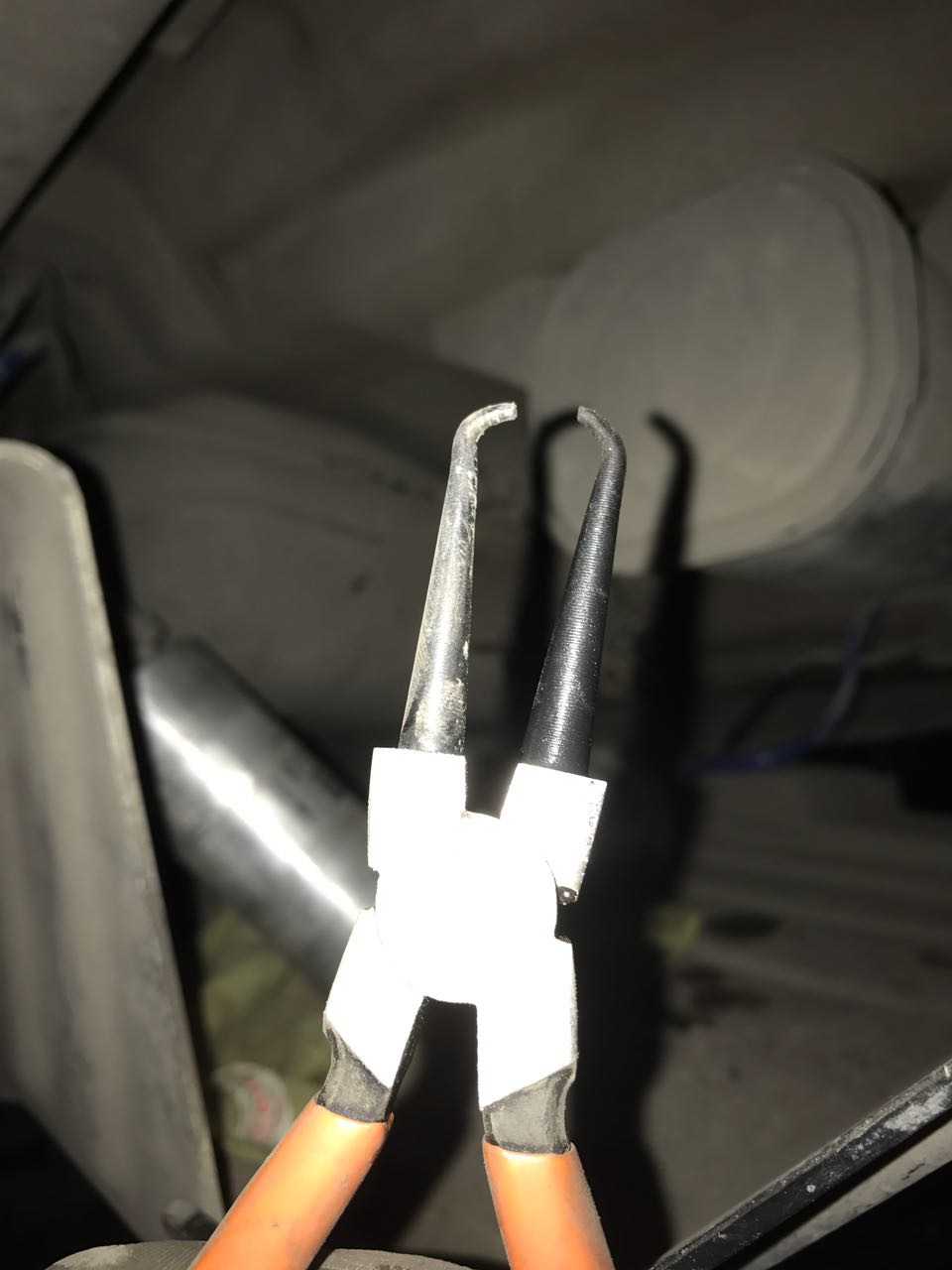 Извлекаем топливный фильтр из двух фиксирующих скоб…