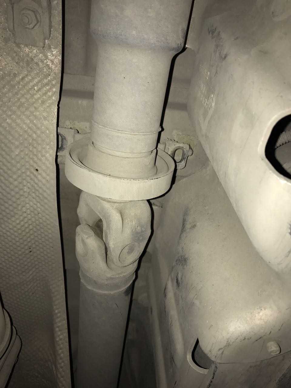 5. Ключом с головкой на 13 отворачиваем две гайки крепления кронштейна промежуточной опоры карданного вала.