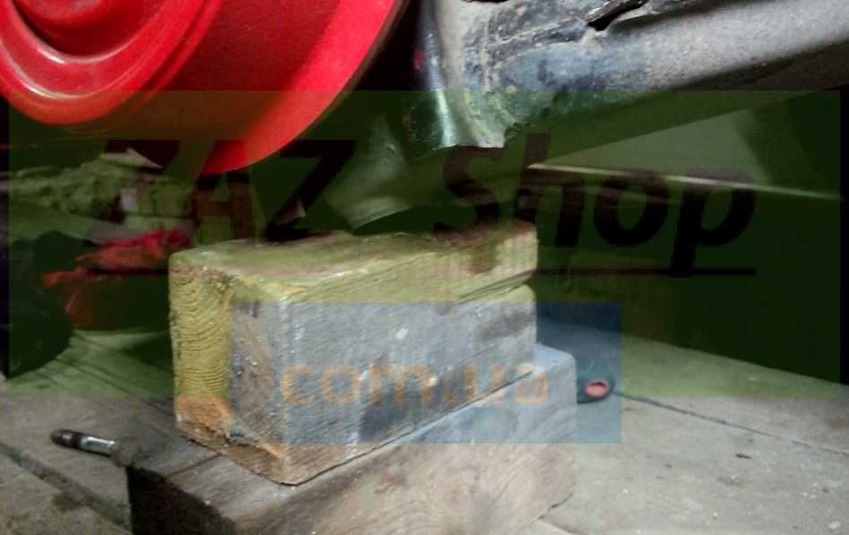 - Приподнимаем домкратом переднюю часть авто и ставим под порог страхующий упор.