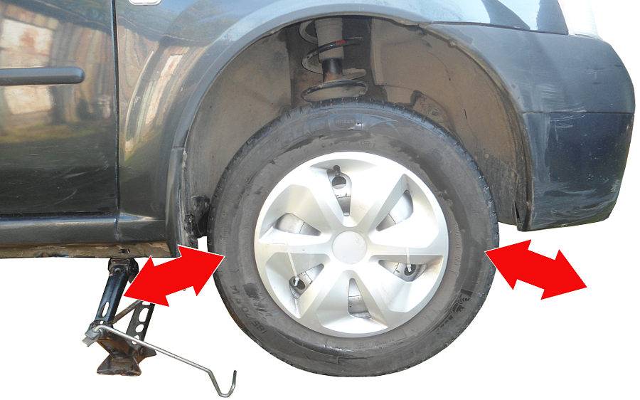 Поддомкрачиваем переднее колесо (то, со стороны которого слышен стук)