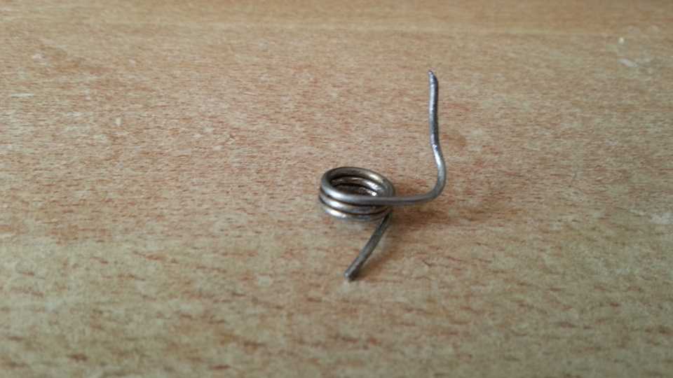 Так как заменить эту пружинку нечем, я попробовал распустить один виток и согнуть пружину как нужно, но из этого ничего хорошего не вышло.
