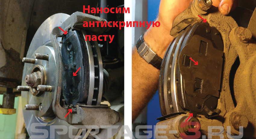 Для этой цели при помощи отвёртки удаляем старенькые пластинки. На их место необходимо установить новые, они предупреждают дребезг колодок киа спортейдж замена тормозных колодок движении. Смазываем направляющие суппорта При работе потребуется смазать направляющие суппорта Киа Спортейдж. Это нужно если вы поставили цель тормоза работали мягко и умеренно, и аналогично усилие во время торможения на колёсах было однообразное.