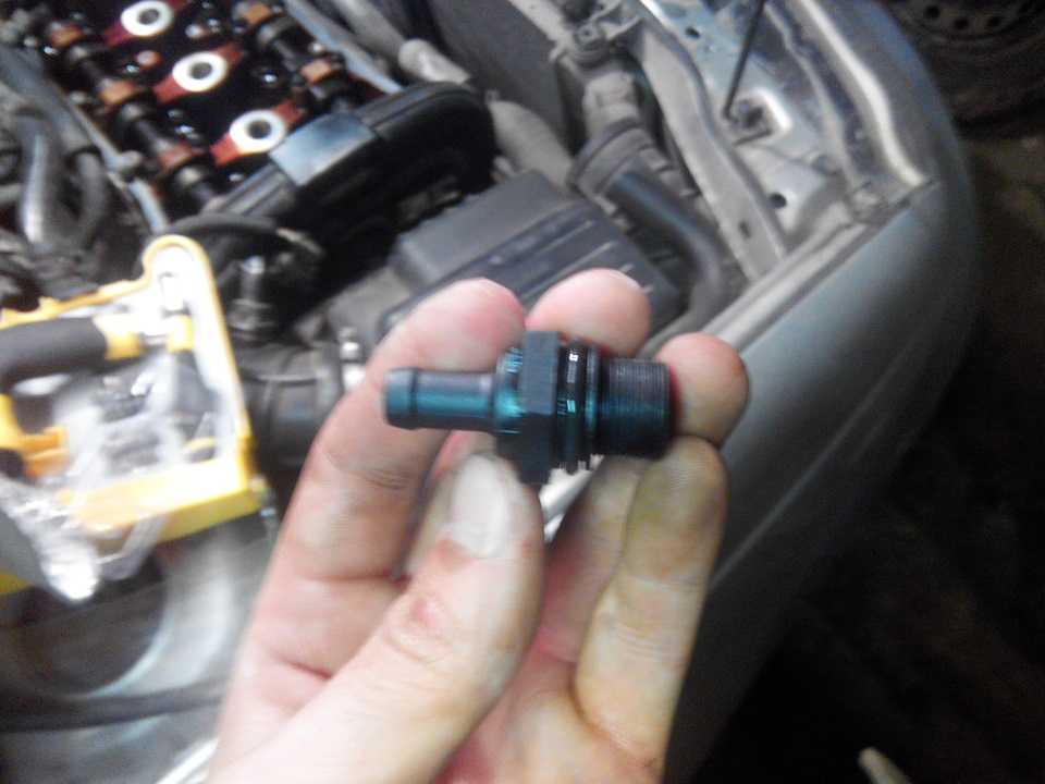 При этом, пользуясь случаем, неплохо бы проверить клапан картерных газов, который с левой стороны прикручен в клапанную крышку(с него еще шланг сняли) Вот и он: