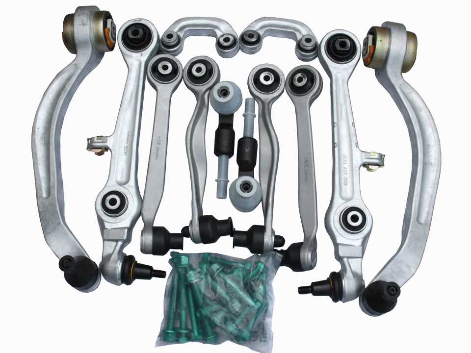 Рычаги подвесного блока ФВ Пассат Б5 изготовлены из алюминиевых составов, сопряжены с шаровыми стойками. Из-за мягкости металла, адаптация к российским дорогам вызывает сомнение. Быстрее и чаще проблемы создает передняя конструкция, рычажные системы выходят из строя уже через 40-70 тыс.км. В начале 2000-х конструкторы разработали ремкомплекты, что несколько улучшило ситуацию.