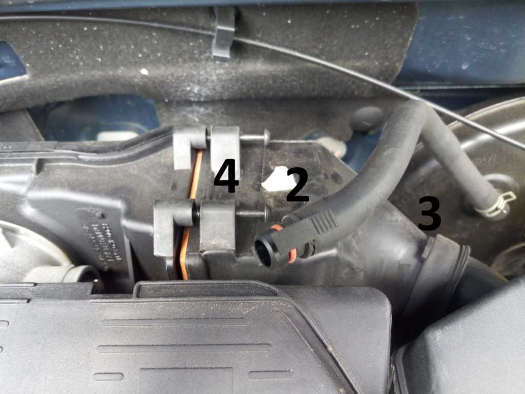 - Снимаем патрубок. Расположение – двигатель, с правой стороны;