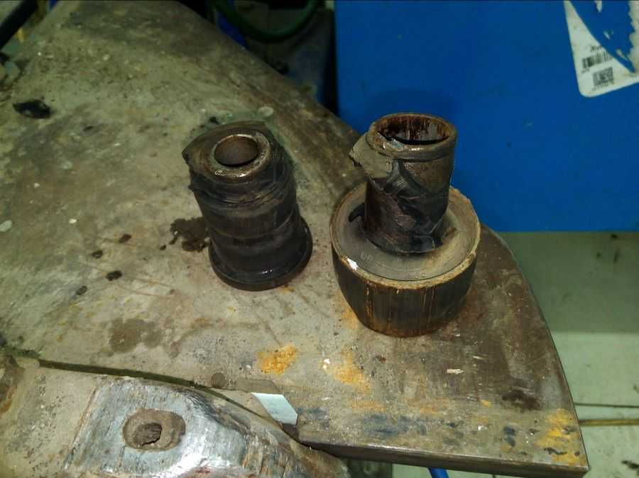Теперь рычаг находится отдельно от машины. Вытащив сайлентблок при помощи пресса, произвести сверку маркировки и размеров