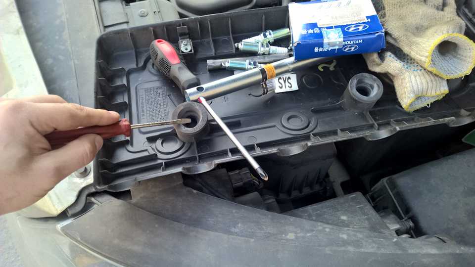 - Демонтировать крепежные элементы для пластиковой крышки двигателя;