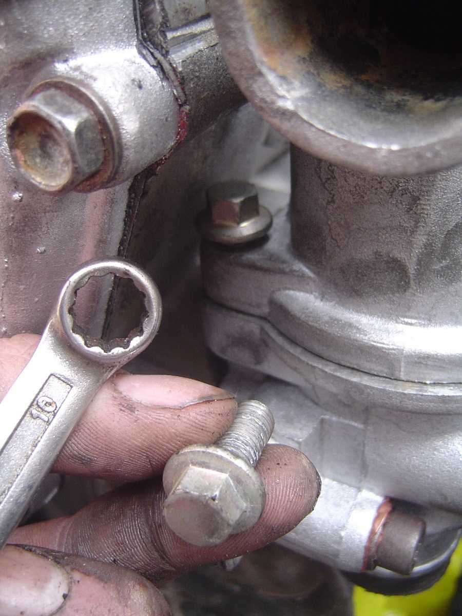 Это исправляется путем шлифования стенки головки цилиндров и установки меньшего болта с головкой или болта под 6-контактный штифт.