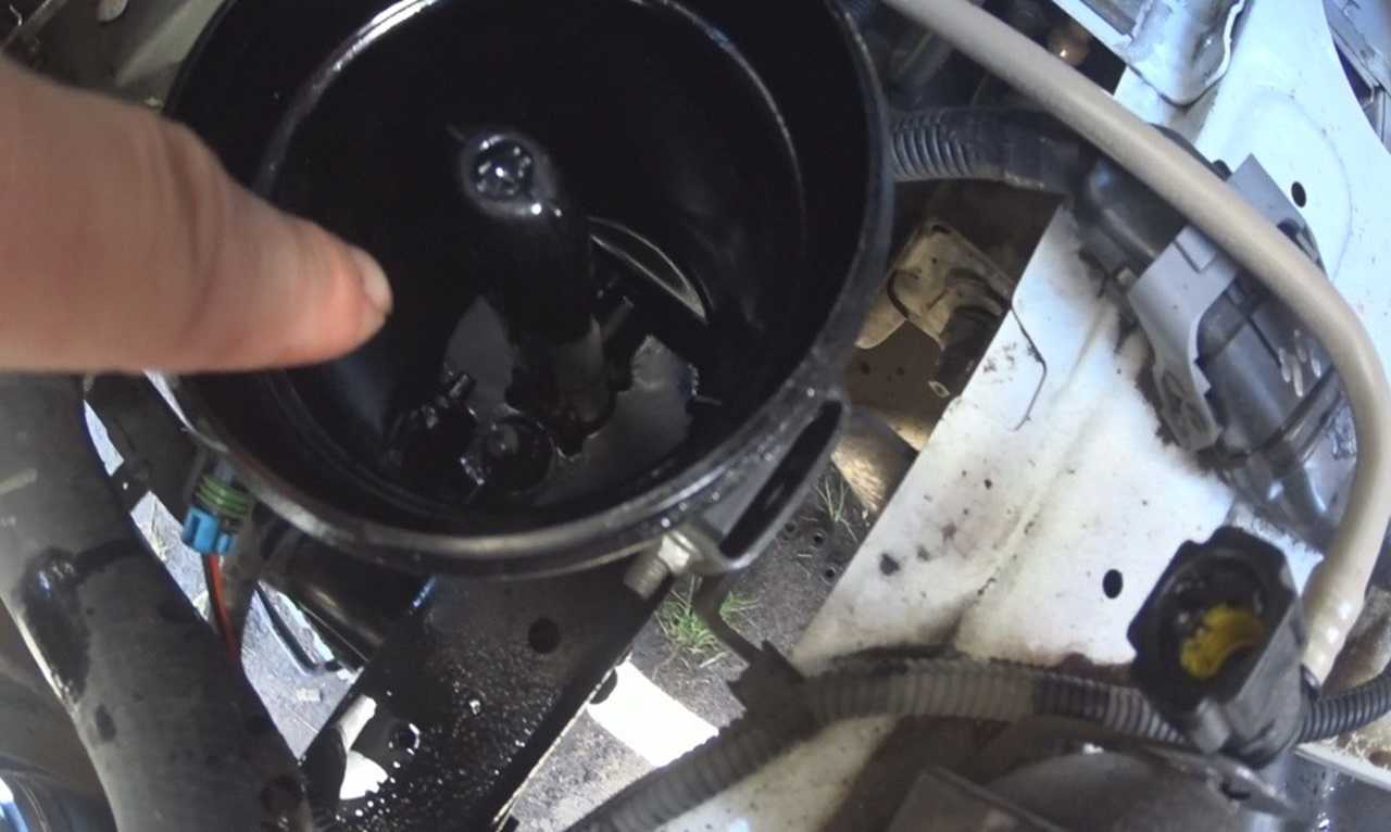 Убрать остатки топлива ветошью и вынуть картридж фильтра.