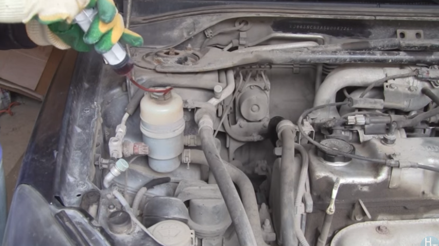 Есть второй способ более быстрый, однако у него есть минусы. Не обзяательно крутить рулем, можно несколько раз прокрутить двигатель стартером, тем самым старая жидкость уйдет в бутылку, а новая заполнит так же систему. Однако если в бачке уйдет масло и туда попадет воздух, насос гура может сгореть.