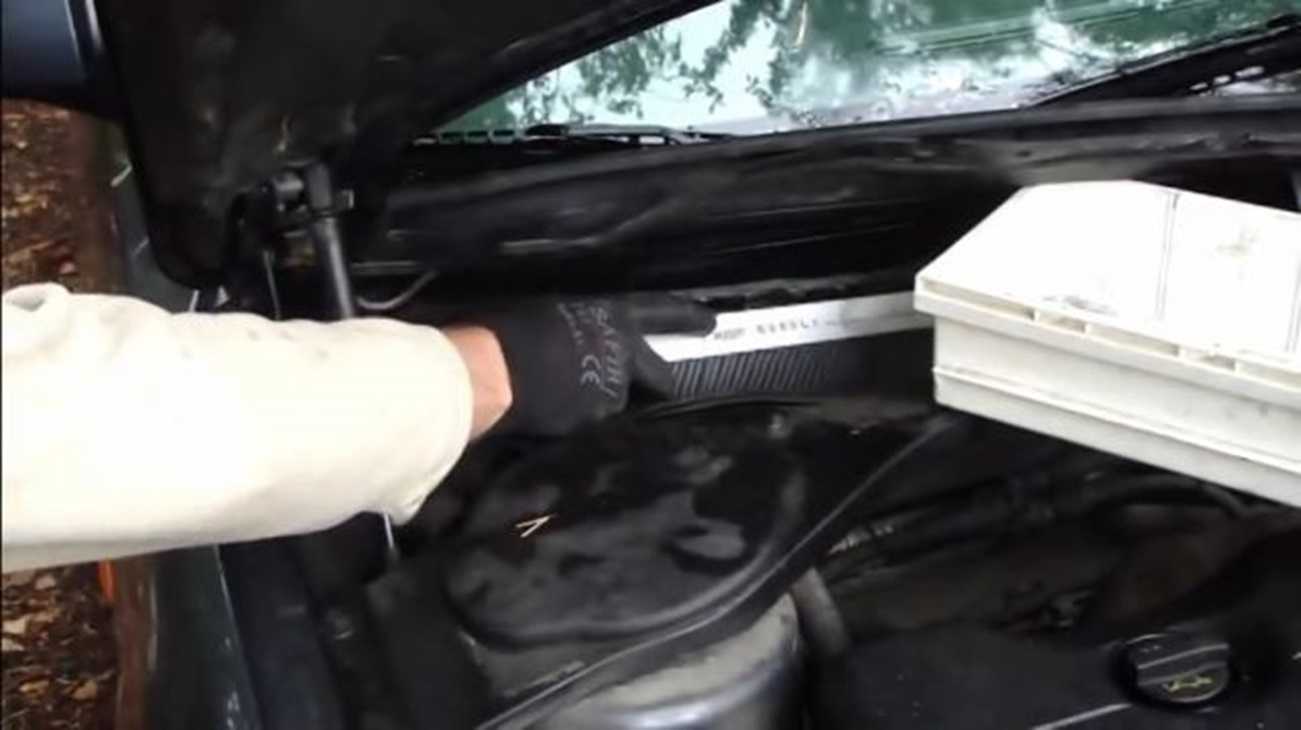 Ключом торкс выверните 5 саморезов крепящих панели закрывающие доступ к воздушному фильтру. Далее снимите эти панели вместе с пластмассовой направляющей, крепящей их к лобовому стеклу (тяните панели вдоль лобового стекла вниз). Далее следует разъединить эти панели и направляющую. Панели желательно промыть (особенно крепежи которые входят в направляющую), а саму пластиковую направляющую следует прочистить отверткой с намотаной на неё ветошью (в пазы направляющей может забиться грязь, что помешает правильному монтажу направляющей пи панелей).