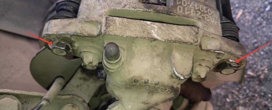 - далее выкручивается два болта суппорта – чтобы его возможно было снять;